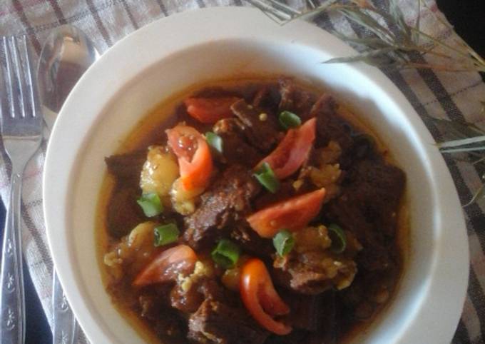 Sekilas, hidangan ini mirip dengan semur karena memiliki kuah yang pekat.